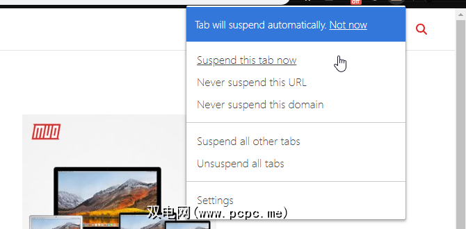 Great Suspender可让您对选项卡的挂起方式进行相当广泛的控制。您可以将特定站点列入白名单,因此,如果始终需要在浏览器中打开电子邮件收件箱,Great Suspender是一个不错的选择。要重新加载已暂停的标签页,请在窗口中的任意位置单击。