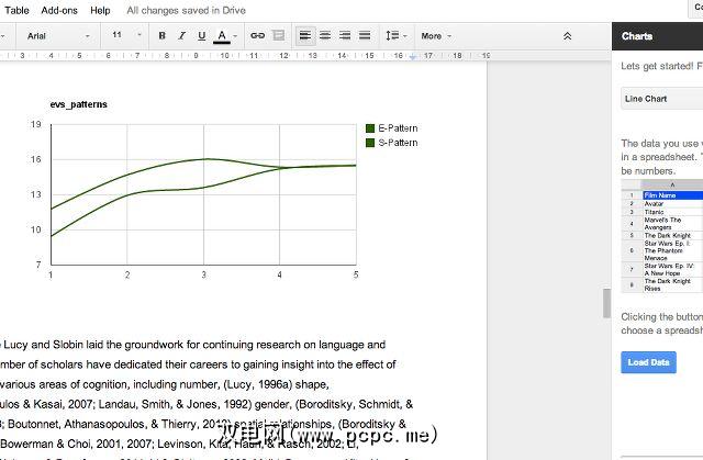 研究论文和论文通常需要图表,而创建,保存和上传它们可能会很麻烦。通过允许您从Google电子表格中添加图表,恰当命名的Charts附加组件使此操作变得更加容易。只需选择保存数据的工作表,选择数据范围,然后插入即可!