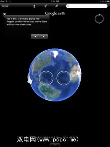 何时首次启动Google Earth时,该应用程序将引导您完成简短的教程,以帮助您习惯于使用触摸界面在世界各地导航。您可以随时跳过此操作,但是花几秒钟的时间进行操作会使使用该应用程序带来更愉快的体验,这始终是一件好事。