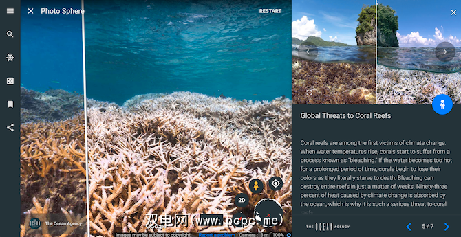 此虚拟之旅将帮助您熟悉珊瑚礁的基础知识。了解这些奇妙的水下殖民地是如何在数百万年间形成的。每章讨论基本主题,例如珊瑚礁多样性,带有视频摘要和水下街景的珊瑚礁全球威胁。