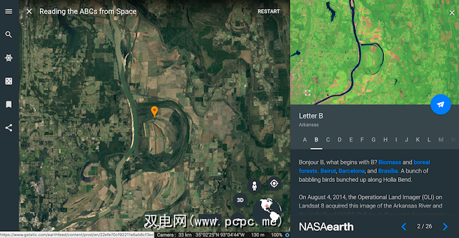 也许,Google Earth上最吸引人的虚拟漫游是从太空读取ABC 。该旅程由NASA发起,共计26章,其中揭示了一些位置,这些位置形成像J形的珊瑚礁或类似V的两个湖泊相交的字母。
