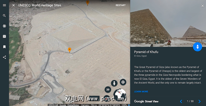 跟随Google地球向您介绍联合国教科文组织宣布为世界遗产地的30个历史地标。虚拟导览为每个导览提供了快速摘要。其中包括印度的泰姬陵,柬埔寨的吴哥窟塔,塞维利亚的塞维利亚大教堂等。