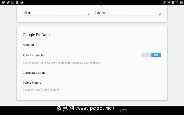 “设置"页面还允许您从Google Fit服务器中删除个人数据以及管理连接的应用程序。