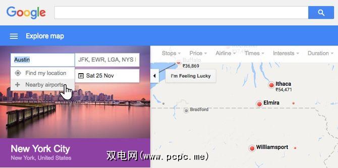 Google Flights Insight也将部署到桌面。在此之前,您可以使用下拉菜单中的附近的机场选项来选择更便宜或更不繁忙的机场。飞行路线图会发生变化,以反映您的选择。