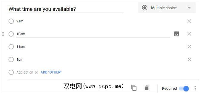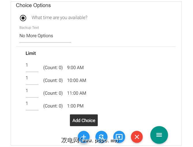 用于删除答案选择问题后,请查看Choice Eliminator2。该附加组件适用于可接受有限答案的表格。例如,您可以将其用于安排家长会议或员工年度审核的时间。