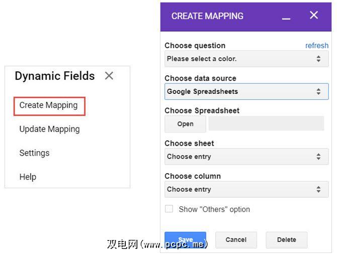 只需安装加载项,然后创建或打开表单。点击附加组件按钮,然后选择动态字段。在弹出窗口中,选择创建映射开始。然后填写每个字段以填充数据,并在完成后单击保存。