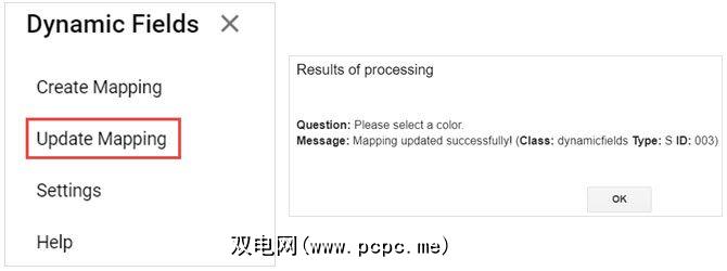 创建映射后,必须更新表单。再次从按钮打开加载项,这一次,选择更新映射。完成后,您将看到更新的确认消息以及对表单所做的更改。
