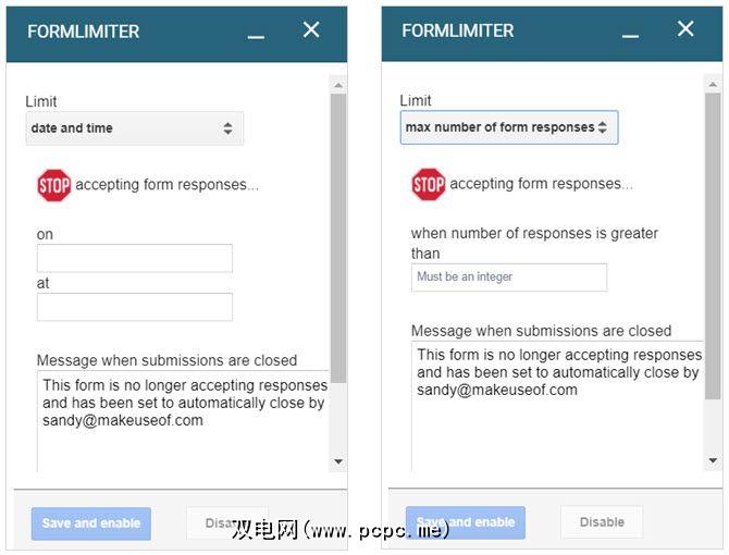 您永远不必记住使用FormLimiter关闭表单。这个方便的附加组件使您可以根据日期或数字或收到的响应停止表单提交。如果您正在收集数据以提供促销,例如“第一个响应的X收到优惠券",则可以使用此方法。如果需要这些信息以在产品分销商的截止日期之前使用,则可以使用它。