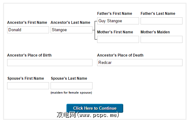 相反,您可以尝试进行自定义搜索,例如genealogy-search-help.com。只需添加尽可能多的必需信息,然后单击按钮。搜索字词将被构建,可供您使用并收集结果!