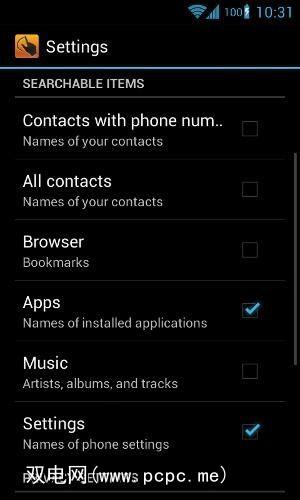 您可以搜索包含电话号码,所有联系人,浏览器书签,应用程序的联系人,音乐和设置。老实说,我建议您不要开启所有这些功能:获得太多结果只会带来令人沮丧的体验。手势搜索的优点在于,通常只需要一个或两个字母即可到达我想要的应用程序,因此超快。