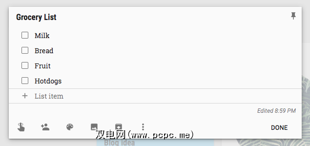 Google Keep的简单性也使其具有灵活性和创造力。因为它是如此简单,所以您可以根据自己的需要调整服务。 Google Keep可以最简单的形式转换成简单的待办事项列表。每天或每周创建一个清单以保持您所做的工作的运行日志。