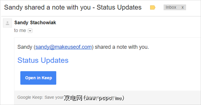 要在Google Keep记事上进行协作,只需点击注释上的协作者图标,然后在弹出框中输入同事的电子邮件地址。他们将收到一封带有便笺标题的电子邮件以及在Google Keep中打开该便笺的链接。