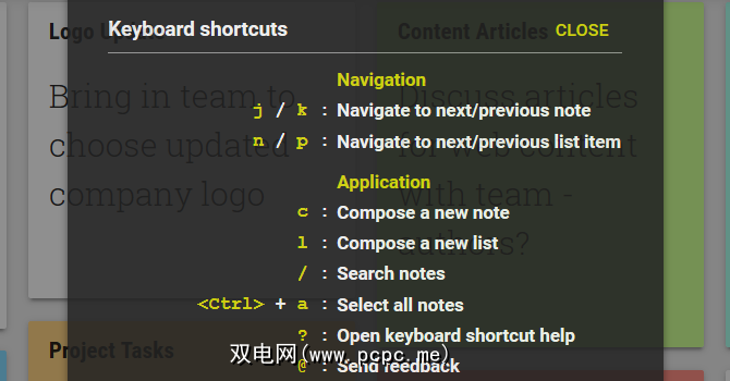 。您还会在Google Keep菜单中看到键盘快捷键的选项。单击后,将显示一个弹出窗口,为您提供所有快捷选项。因此,如果您在网络上使用该应用程序,请利用这些便捷的方法更快地浏览Google Keep。