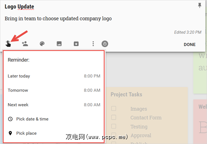 在管理任何项目时,截止日期至关重要。 Google Keep知道这一点,可让您快速灵活地设置提醒。您可以同时使用定时提醒和基于位置的提醒,以便在移动设备上使用。