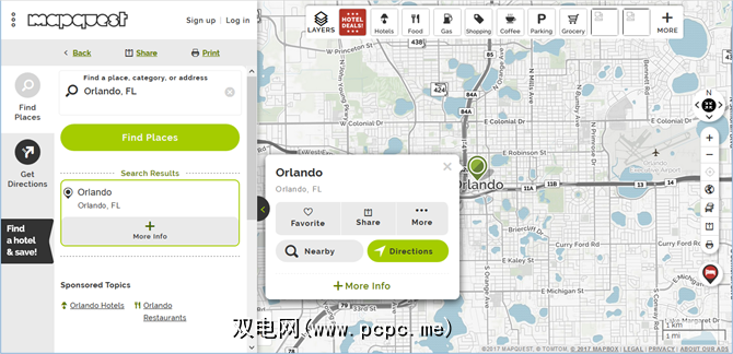 与MapQuest一样,您可以获得路线图和地图,并可以添加诸如