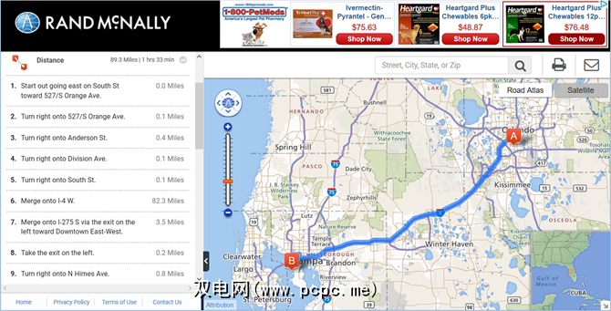 兰德·麦克纳利(Rand McNally)在线地图和路线可能不具有可比站点那么多的功能。但是,根据公司的历史,您当然可以相信结果。