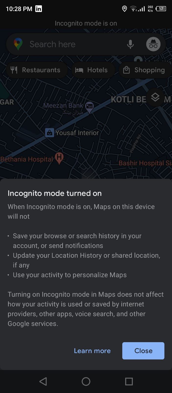 这样,该应用程序将不会保存您最近的搜索和位置历史记录。但是,您应该注意,在隐身模式下,位置共享、离线地图、媒体播放和其他一些功能也将不可用。