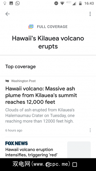 全面报道是该应用程序的另一个新功能。轻按故事卡片右下角的彩色小方框图标,即可在任何故事中使用它。轻触图标将带您进入有关故事的专用页面。