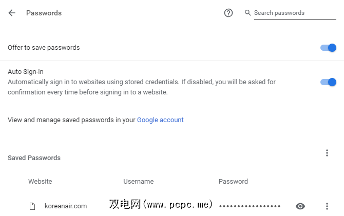 或者,转到在浏览器中输入passwords.google.com 。登录您的Google帐户以查看所有已存储网站的列表。单击一个以查看有关它的更多信息。从此处单击眼睛图标以显示密码,或单击删除删除条目。