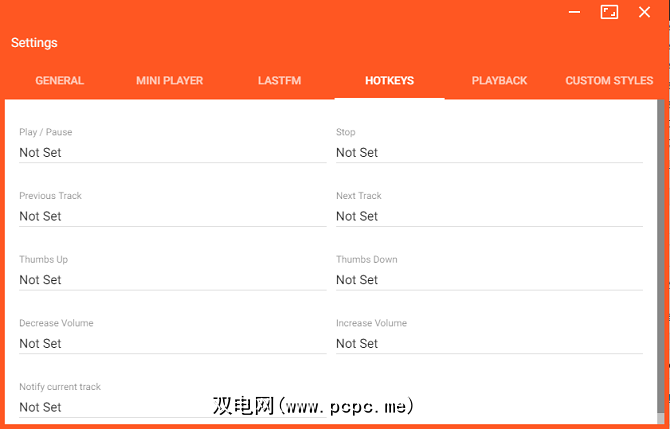 GPMDP修复了这一烦人的问题。您最多可以为9个单独的操作创建一个热键,包括播放/暂停,增大/减小音量和“立即显示正在播放"。