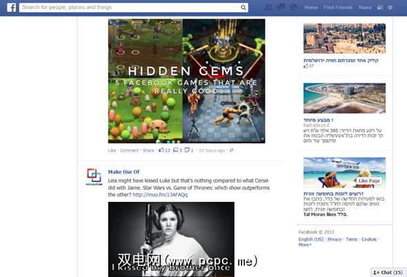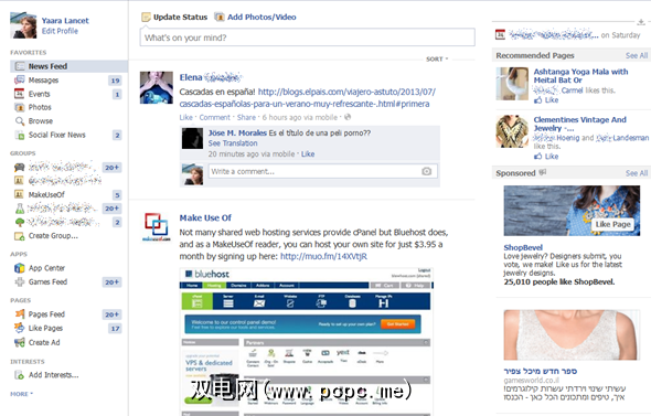 Facebook的导航侧边栏非常混乱,说实话,没有用(我从未真正使用过)。它也停留在顶部,所以一旦向下滚动,便无法再使用它。但是,顶部的栏是粘性的,可让您不断访问设置,个人资料,通知,朋友的请求以及著名的(或臭名昭著的)Facebook Graph Search(我们很快就会进入)或Facebook的旧搜索(如果您有)毫无疑问。