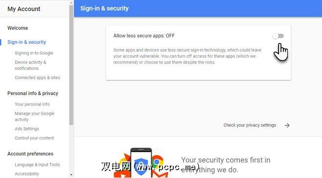 否决Google的默认设置是一个坏主意并允许这些应用通过。但是,当您反复遇到“密码错误"错误时,这可能是故障排除步骤。