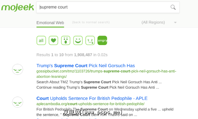 键入关键字并点击表情符号以获取与情感匹配的搜索结果。单击其他表情符号,结果将更改。它确实有效,并且您可能会发现其他情况下找不到的链接。我发现这是一种真正不同的,很酷的浏览搜索结果的方式。