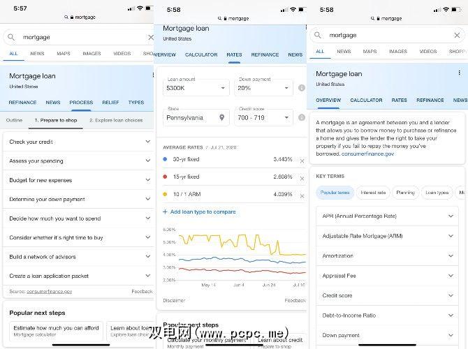 由于与美国消费者金融保护局(CFPB)建立了合作伙伴关系,因此在Search中键入“抵押"一词将提供各种信息,这些信息在您决定购买房屋时会派上用场。提供有关费率,再融资,购买流程,信用等信息。