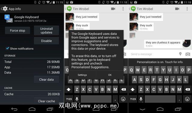 适用于Android的Google键盘应用通过整合您使用其他Google应用和服务的数据来改进建议和更正。 Google将数据存储在本地。用户可以选择关闭该功能或从其设备中删除数据。
