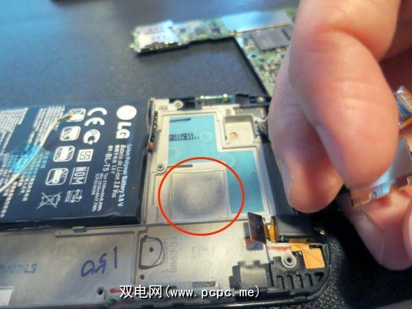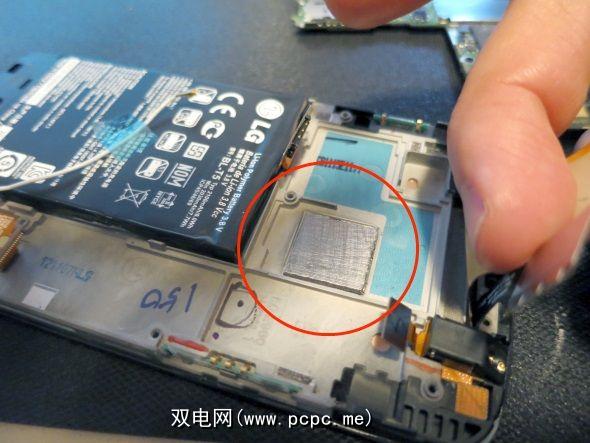 与Optimus G不同,Nexus 4有一个可怕的秘密–它的CPU无法有效地散热。 XDA会员troun2000剖析了Nexus 4,发现了一个严重的设计缺陷:LG没有将CPU固定在Nexus 4的金属框架上,而是通过留有0.5mm的空气间隙来使CPU保持隔热。大气不能很好地导热。实际上,空气是强大的绝缘体。