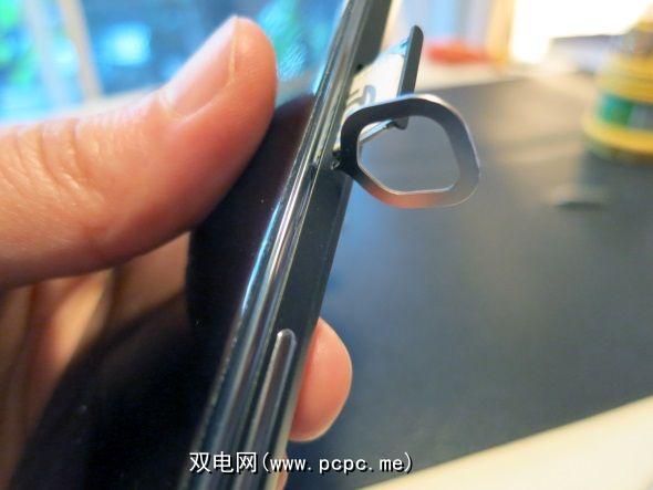 Nexus 4随附SIM卡弹出工具。只需将其插入弹出孔即可随即弹出SIM卡托。将SIM卡及其托盘放在一边,然后继续。