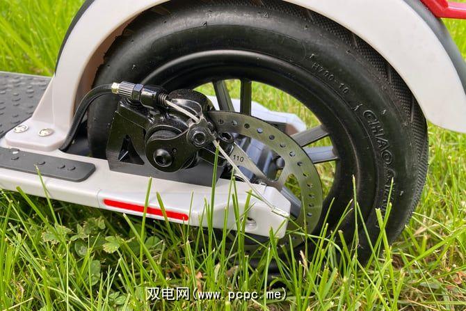 刹车线暴露在外,这对于电动踏板车来说是不常见的。它更像是您在自行车上看到的样子。这主要是一个美学问题,尽管我认为刹车线可能因为暴露在外而磨损得更快。