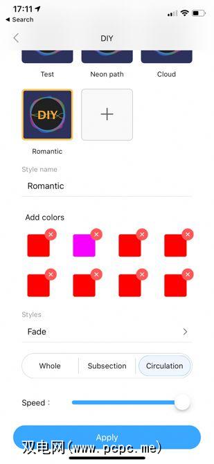 如果您考虑特定的调色板或动画速度,则可以使用简单的DIY设计器来保存自己的方案。之前,我已经使用Arduino对自己的像素动画进行了编程,但Govee应用程序提供的选项感觉非常局限。它们仅限于:
