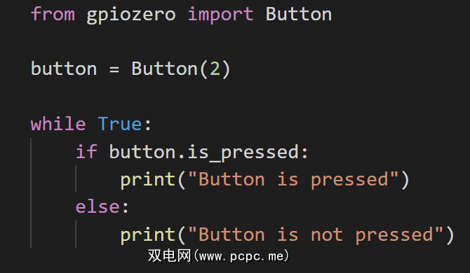 按钮模块简化了按钮的设置。它知道按钮是输入,因此使用声明的引脚号进行设置。使用 .is_pressed 来检测按钮是否按下也很容易。