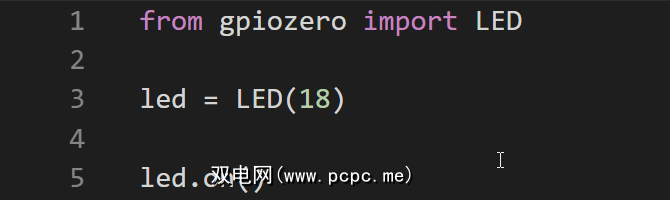 GPIO Zero有一个用于LED的模块,该模块在开始。这意味着您可以声明引脚号,然后调用 led.on()方法。