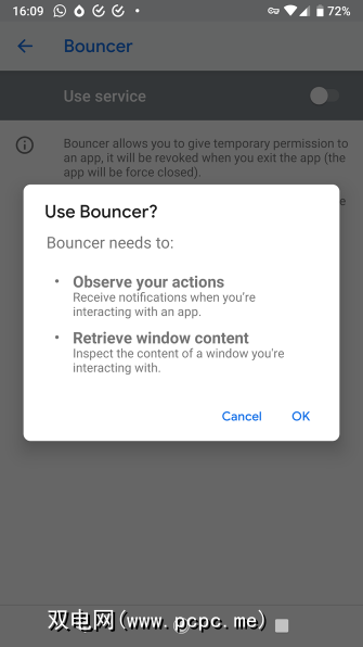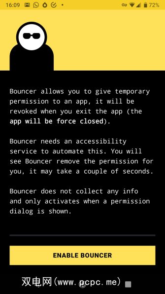 Bouncer是一个简单的Android应用,目前处于测试版,可让您临时授予Bouncer。权限。