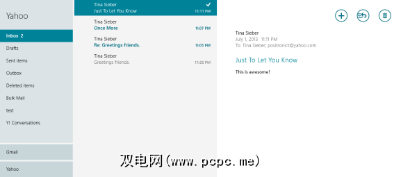 通过一个应用程序管理多个帐户可以节省时间,因为您可以将所有内容都集中在一个中央位置。与在浏览器选项卡之间来回跳转相比,在Windows 8 Mail中在电子邮件帐户之间进行切换非常方便且令人愉快。请注意,邮件应用不仅支持Microsoft电子邮件帐户(例如Hotmail或Outlook),还可以添加任何支持IMAP的帐户(例如Yahoo,Google和许多其他帐户)。