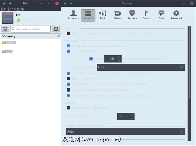 Jitsi的主要缺点是外观。这些图标本质上是拟人化的,有些过时了,尽管仍然不如以前的罪犯那么糟。但这是尝试集成您的系统主题的方式,这可能确实是一个问题。如果您使用的是深色主题,则只有部分程序的颜色会有所不同。其余的保持柔和的蓝色,从而引起一些对比度问题。