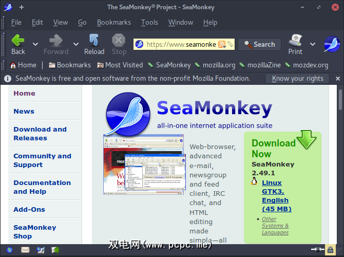 Seamonkey站在Mozilla的Firefox网络浏览器的肩膀上。这甚至扩展到它的书签文件夹,看起来很古老。