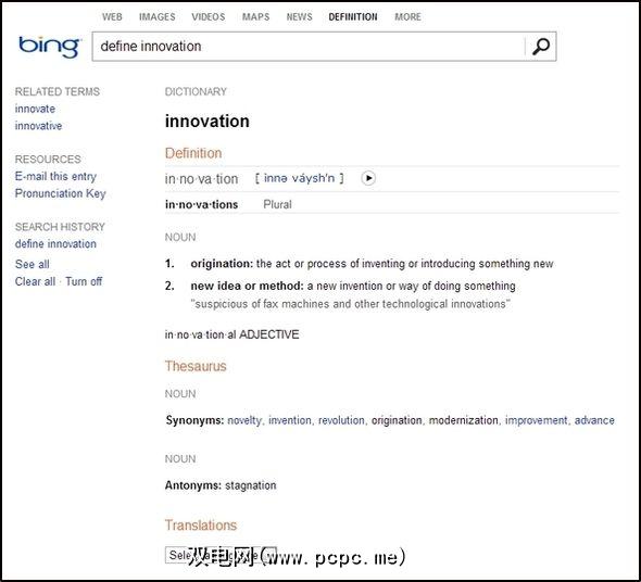 在Bing上可以利用的其他一些很棒的工具是计算器,翻译器,字典和本地搜索。