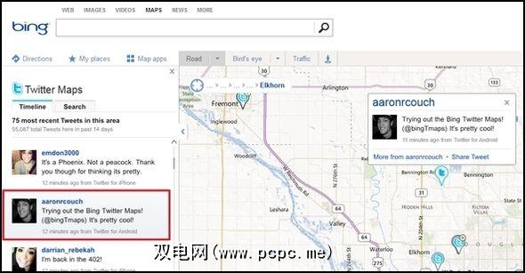 我们已经提到过Twitter在地图中的集成,但是我觉得Bing中的普通地图功能也令人印象深刻。只需看一看即可轻松找到您想要的东西!
