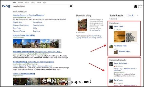 将Facebook连接到Bing并进行搜索时,您朋友的相关帖子和照片将显示在搜索结果的旁边兵。此外,Bing在Twitter,Quora和其他社交网络上搜索“知识渊博"或经常谈论您正在搜索的话题的人。