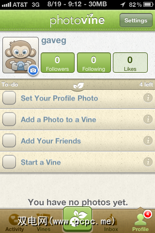 下一步,该应用将希望在Photovine上为您找到一些朋友。您可以使用Twitter,Facebook或电子邮件找到朋友。即使您没有成功找到任何朋友,该应用程序仍会为您的尝试提供功劳。