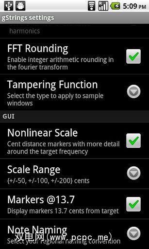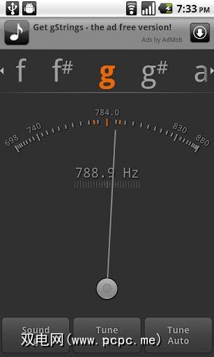 乍一看,您可以轻松地看到gStrings提供了调音应用程序中普通音乐家所需的大部分功能。您可以选择半音阶的任何音符,在应用程序中播放该音符以进行调音,或者让该应用程序聆听您演奏该乐器的乐器,并向您显示离正确音符的距离。