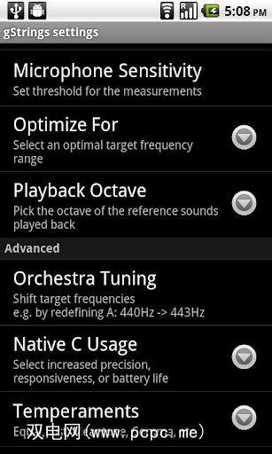 gStrings除了需要纯色标度之外,还提供了一些您会喜欢的高级调整功能。您可以将调音更改为乐团调音,这将A从440Hz重新定义为443Hz。您甚至可以将气质更改为相等,意味着,公正,逗号或更多。还可以根据您的需要使本机C精度更高或更低。