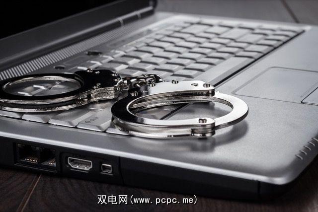 图片来源:网络犯罪,病毒感染,笔记本电脑上的手铐,通过Shutterstock的Internet安全。