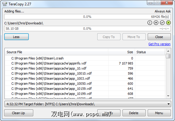 TeraCopy还可以将其自身添加到上下文菜单中,因此您只能在需要时启动它并在大多数情况下使用标准的文件复制对话框(如果您愿意)。
