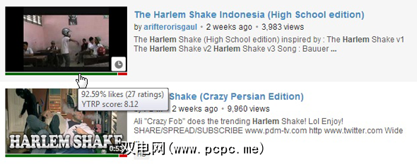 如果安装了此插件,您将在所看到的任何缩略图上方看到该视频的评级视频(当然,只要您在YouTube网站上)。这似乎是微不足道的改进,但是请相信我,这是其中的一件事,直到它消失了,您才知道它的用处。