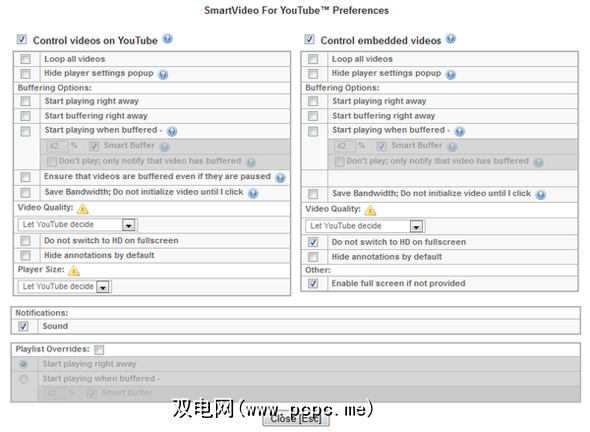 SmartVideo是Firefox的一个插件,不仅可以改善缓冲区质量和视频播放,还可以提供其他一些选择,可以最大程度地提高视频质量。它不如上面的YouTube选项那么全面,但仍然是: