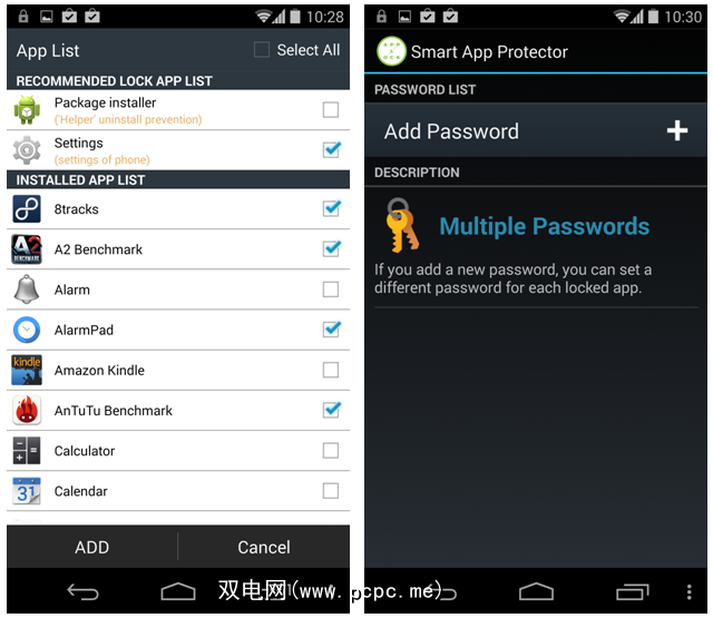 Perfect App Locker顾名思义,可帮助您锁定和保护自己的应用程序电话,以便其他人无法访问它们。它的原理与Smart App Protector相似,但是有一些差异值得说明。
